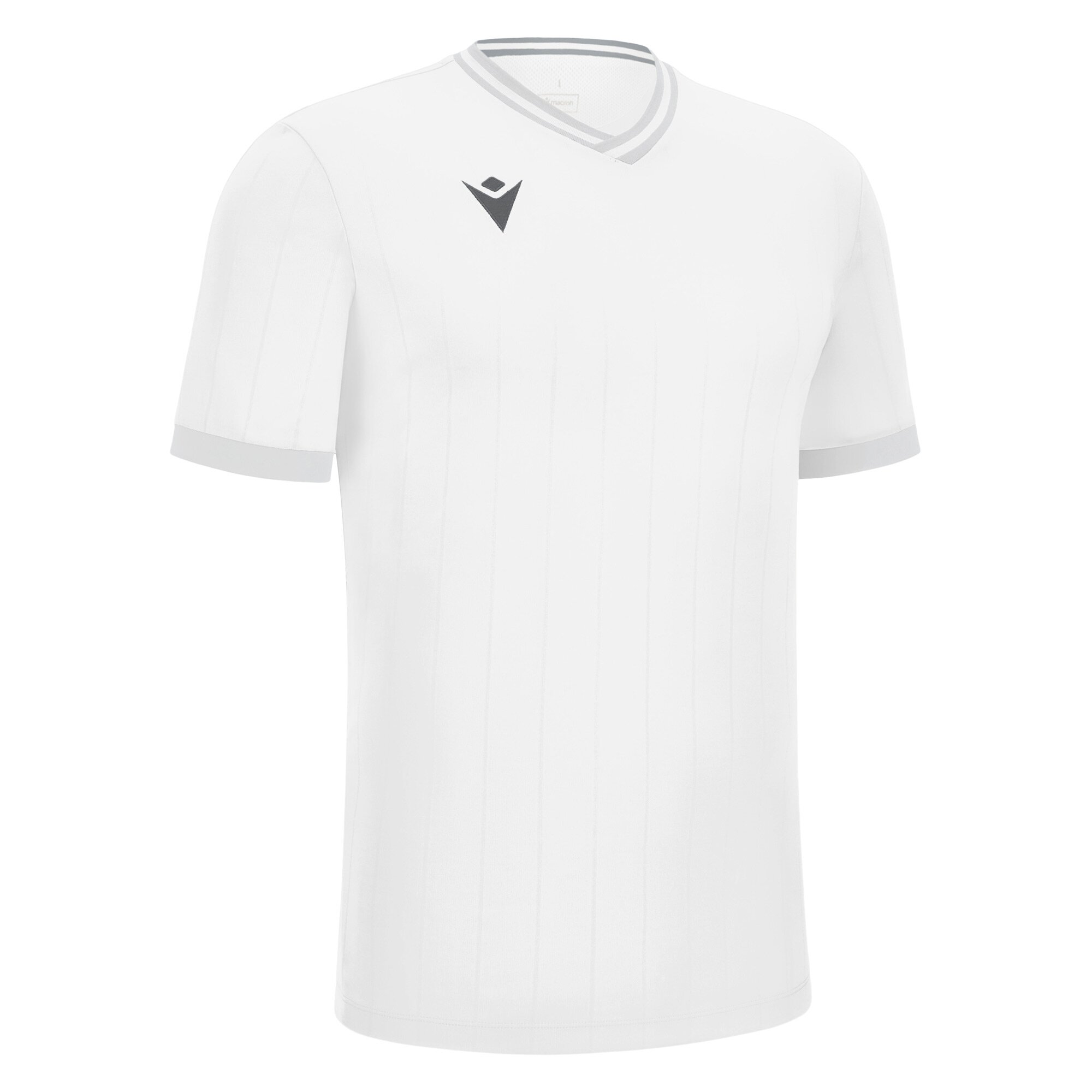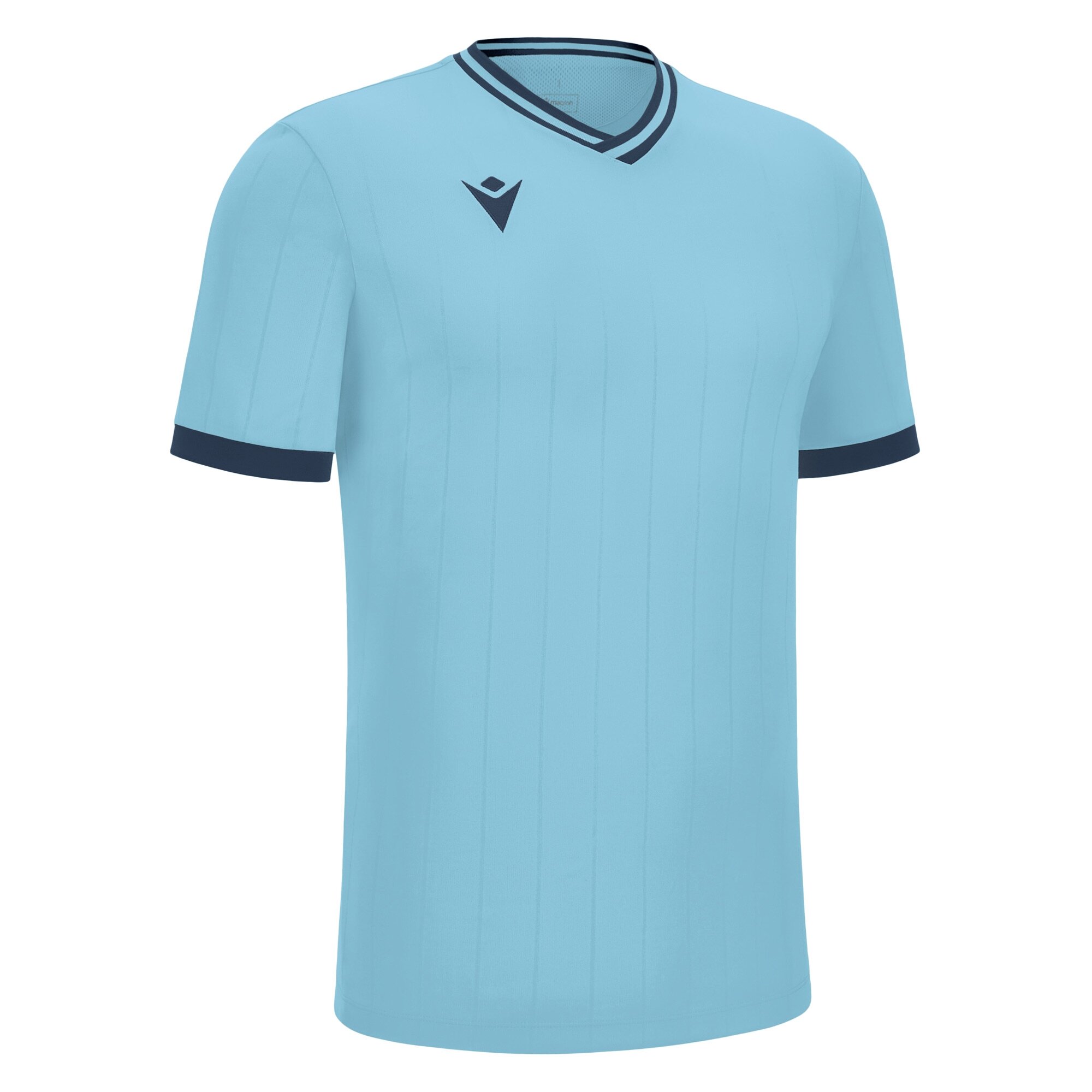 Trikot aus Vertilock Jacquard-Gewebe mit zweifarbigem V-Ausschnitt aus Strick. Die Rückseite ist aus Mikro-Mesh, um beste Atmungsaktivität zu garantieren, die durch die Mesh-Einsätze unter den Ärmeln unterstützt wird.