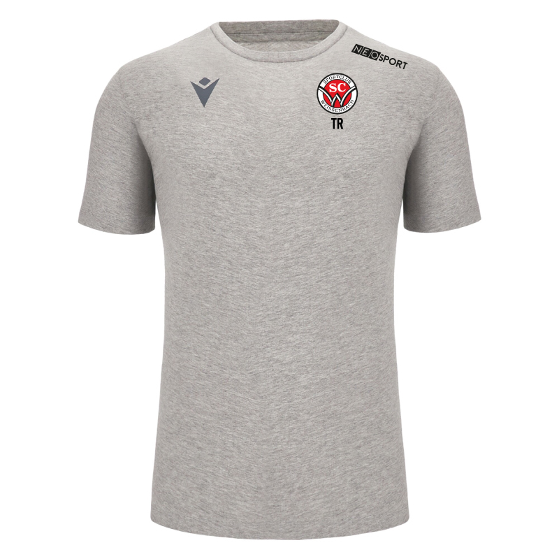 T-Shirt aus nachhaltiger Baumwolle, perfekt für die Freizeit. Leicht und mit linearem Schnitt, bequemem Rundkragen aus Rippenstrick und aufgedrucktem Macron Hero Symbol auf der Brust.