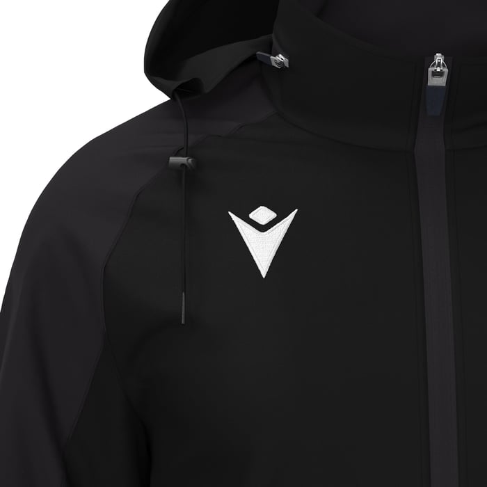 Jacke aus wasserfestem Material mit Mesh-Futter, schützt vor Nässe und ist zugleich atmungsaktiv. Durchgehender umgekehrter Reißverschluss aus Nylon mit selbstsperrendem Schieber. Seitentaschen mit Reißverschluss. Verstaubare Kapuze im Kragen, elastische Ärmelbündchen und Saum mit verstellbarem Kordelzug. Ton-in-Ton-Einsätze an den Ärmeln.